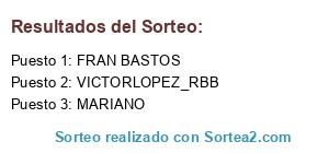 Lista de participantes: LUIS_A_PR, MANUEL, RAUL, JUAN MANUEL, JAVIPALACIOS86, SAÚL, NARBILLO, DO-BLAS, FRAN BASTOS, INES_CALDERON, ZORRILLOESTEPA, ISMAEL, LAS CIGARRERAS, HAYERRO, FERNANVILLALBA, RICHY, URCOLA30, JULIO M, LUNI PUNI, ISRAEL MEJIAS, RAUL CARDONA, VICTORLOPEZ_RBB, LIKIN92, RAFLKY13, LUIS MI, BETISJAVIER, MARIANO, CARMEN CABRERA.