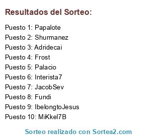 Lista de participantes: JacobSev, Frost, FernanSFC, IbelongtoJesus, Interista7, Freddd, Carlitosfg, Fundi, The Kop, Shurmanez, Hamijail, Papalote, MiKkel7B, Velayos10, Adridecai, Palacio, Sam-Sam, Alerap, Cruzcamper.