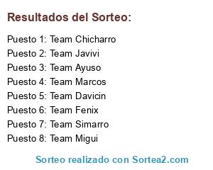 Lista de participantes: Team Javivi, Team Marcos, Team Migui, Team Fenix, Team Ayuso, Team Chicharro, Team Simarro, Team Davicin.