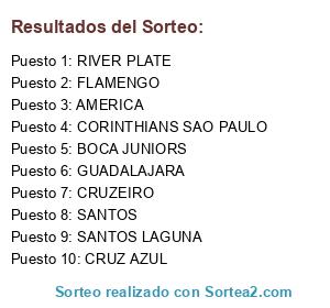 Lista de participantes: AMERICA, RIVER PLATE, CRUZ AZUL, BOCA JUNIORS, CRUZEIRO, GUADALAJARA, SANTOS LAGUNA, FLAMENGO, SANTOS, CORINTHIANS SAO PAULO.