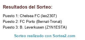 Lista de participantes: Barcelona (Chemadel), Arsenal (Deivid97), Chelsea FC (leo2307), FC Porto (Bernat-Tronat), F.C Inter de Milán (kanutor, B. Leverkusen (Z1N1ESTA), Shakhtar ( cristian501 ).