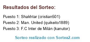 Lista de participantes: Man. United (quikeito1889), Juventus (frankymora), F.C Inter de Milán (kanutor), Shakhtar (cristian501).