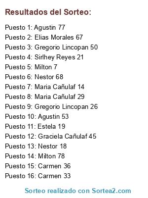 Resultados del sorteo: