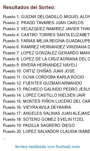 Lista de participantes: CORTES VAZQUEZ ROBERTO, BAUTISTA DEZHA MARTHA ALEJANDRA, BARAJAS CASTAÑEDA ANDROS ELEOS, ALMANZA RAZO JORGE ABRAHAM, JAIME GAMIÑO MARIA DE JESUS, ESPINOZA LOPEZ OSIRIS, MUÑOZ BARAJAS NANCY GUADALUPE, BARRAGAN PATIÑO ANGEL, VALDESPINO HERNANDEZ ALEXIS EUNICE, REYES PERERA OSCAR HERNAN, MARTINEZ GUZMAN ALEJANDRA, TELLEZ GALLARDO DENISSE, CRUZ SALDIVAR ANA ELIZABETH, AGUILAR DIEZ EMILIA, MORALES GARCIA ALEJANDRA ISELA, RUELAS GAYTAN DAVID, BARROSO VELAZQUEZ LEONARDO VALENTIN, REYES VAZQUEZ ALINE, GARCIA CRUZ AIRAM ATHZIRI, LOPEZ SALVADOR CLAUDIA ISABEL, ALCANTAR GARCIA JORGE, SUAREZ PORTILLO ARTURO, SANTIAGO LEON PATRICIA, RIVERA HERNANDEZ NAYELI, OLVERA CARRILLO CARLOS FERNANDO, GOMEZ DURAN KAREN, VILLANUEVA GARCIA ALBERTO AMISAI, SUAREZ MORALES EDGAR LEONARDO, RAMIREZ ARCE KARLA VANESSA, OCHOA SOTELO JESUS SAMUEL, BARTOLO SALINAS SERGIO, LOPEZ DE LA CRUZ ADRIANA DEL CARMEN, REYES GALAN PATRICIA, ORTIZ MANRIQUE HUGO OMAR, HERNANDEZ TELLEZ JESSICA JOALY, GARCIA URIOSTEGUI CECILIA, CAMACHO HERNANDEZ EDGAR, OLVERA ROSAS DIANA LAURA, CUELLAR GUARDIOLA JOSE IGNACIO, CHAVEZ LOPEZ SERGIO, MIRANDA GARCIA JOSUE ABRAHAM, DOMINGUEZ MENDOZA RICARDO, ORTEGA ENRIQUEZ GERARDO MIGUEL, HERNANDEZ RANGEL ESMERALDA, NILA MARTINEZ MANUEL ALEJANDRO, CONDE CUAYA MARIA LOURDES, SANDOVAL OLVERA JESUS DANIEL, REYES MARTINEZ JOSE IVAN, DE JESUS CRUZ BRIAN ULISES, GUILLEN RODRIGUEZ GUSTAVO, GUTIERREZ GUTIERREZ DOLORES LINA, MONTIEL SORIANO GUILLERMO, MORENO EGUIA PRISCILA ABIGAIL, TAPIA OLIVARES CESAR, DURAND VARGAS MIGUEL EDUARDO, LOPEZ CASTILLO NIELSEN JAIR, ARIAS GARCIA ALEJANDRA, MONTES COVARRUBIAS ROSALBA, GERONIMO JUAREZ ERIKA, ARMENTA VALENCIA CORINA, MORONES GOMEZ MONICA BEATRIZ, ACOSTA MORALES ISAI, FUENTES GUZMAN ARMANDO, LAZCANO BAEZ GUADALUPE ELIZABETH, ACUAPAN LOPEZ LUIS ALEJANDRO, MONTES IBAÑEZ BERENICE, GERONIMO VELASCO CARLOS ISAAC, PARRA HERNANDEZ GUILLERMO, ORTEGA MEJIA CESAR ANGEL, MARIN ROMERO KAREN ZUGHEID, JIMENEZ ISTEPAN MELANY AIDE, VIDAURRE GARCIA ENYA, IBAÑEZ REYES ALEXIS, RIVERA MARINA CLAUDIA, SANCHEZ GOMEZ LILIAN, RIVERA CRUZ YOSMAR ALEJANDRO, GONZALEZ MAGAÑA RAMON DE JESUS, CRUZ GUADARRAMA JOSEPH IVAN, LOPEZ VELASCO JOSUE, FLORES MORALES ROBERTO, CARRILLO GARCIA ALFREDO, HERNANDEZ ROSAS RUTH SAMAHI, VACA SESMAS LARITZA, CALDERON SANDOVAL DAVID, GUIZAR DELGADILLO MIGUEL ALONSO, CARDONA LOPEZ BRENDA AURORA, SOLIS MAULEON ANA LUISA, HERNANDEZ LOPEZ PABLO EMILIO, FIGUEROA ZAVALA BLANCA LAURA, PADILLA SAGRERO DIEGO, CANTO GARCIA INGRY CLAUDET, FERNANDEZ BARRERA MARIA DE LOURDES, GARCIA IDARZA ABELARDO, CARLOS RAFAEL IRAIS, ARAIZA RAMIREZ YOSGHAR ANDRES, GAYTAN GALLARDO DIEGO, SANCHEZ CERVERA REBECCA VALENTINA, SANDOVAL AVALOS PABLO, CALZADA BERNAL BRITTANY YESENIA, RINCON MATA ELIZABETH, ALVARADO MENDOZA KIMBERLY, MOLINA PEREZ JOSE ALFREDO, MONTES PIÑON LUCERO DEL CARMEN, RODRIGUEZ JUAREZ JONATHAN ISRAEL, ANGELES SALINAS JUAN ALEJANDRO, ARCINIEGA ALAMILLA DIANA KARINA, DIAZ ROMERO EDEN, SOTERO GOMEZ EVELIN ITZEL, MENDEZ GONZALEZ ELMER EVERARDO, SAENZ AVALOS ALEJANDRA, RENTERIA SALINAS LUIS IVAN, FUENTES FLORES JEHUDIEL JOSHUA, VARGAS MADRID JOSE RODRIGO, ORTEGA GONZALEZ JESUS DAVID, ORTIZ CHIÑAS JUAN JOSE, PACHECO GALINDO PEDRO JESUS, CARRASCO CORTINA JAIME ADONAY, CASTRO TORRES SANTA ELIZABETH, MARTINEZ PIÑON ERIK GERARDO, MORA NARVAEZ EDUARDO ALBERTO, FARIAS MEJIA REGINA GUADALUPE, CAZARES SANTANA ROSARIO, RAMOS CRUZ ERICK EDUARDO, LOPEZ GONZALEZ GERARDO MANUEL, BAUTISTA CARMONA JOSUE DAVID, OSNAYA NAVA BRYANT, CASTILLO ORTIZ LIZETH BETZABE, MERINO GONZALEZ ROLANDO, VIEYRA AVILA DEYANIRA, PINEDA GALICIA EDMUNDO, CRUZ MARTINEZ LUIS DANIEL, VILLEGAS ORDOÑEZ LUZ DEL CARMEN, ENRIQUEZ MOJICA VANESSA JAZMIN, PRADO TAVARES JUAN CARLOS, AHUMADA ZARATE CHRISTIAN RICARDO, MENDOZA MONDRAGON KARINA JAZMIN, RAMIREZ FRAGA MARIANA ITZEL, CALVILLO CALDERON JUANA FABIOLA, AGUILAR LUNA DIANA ALETHIA, MANDUJANO GARCIA GESEL FARID, ALMANZA MADRIGAL GONZALO ISAAC, RAMIREZ HERNANDEZ VIRIDIANA DE LOS ANGEL, CHAVEZ GUTIERREZ ANA CECILIA, POLITO COBIX MARIBEL, GUTIERREZ REYES CYNTHIA BETZABE, GUZMAN RODRIGUEZ ULISES, VELAZQUEZ RAMIREZ JAVIER THARIN, MARTINEZ CORRAL LESLYE DEL ROSARIO, GARCIA MENDOZA ESMERALDA, ROMAN RODRIGUEZ KEIRA, ROSAS RAMIREZ MAYTE WENDOLINE, ARAN CARDENAS ALEJANDRO, LOPEZ ANDRADE MARIA FERNANDA, TOVAR ESCUDERO BRANDON, RESENDIZ PEREZ CHANEL AYERIM, CETINA CALDERON GIRASOL DEL ROCIO, RIVERA ZACARIAS ROSA JAEN, OLIVA CORDOBA KARLA ROCIO.