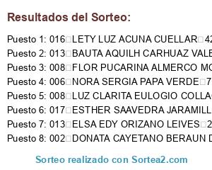 Resultados del sorteo: