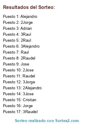 Lista de participantes: Raul, Raudel, Jorge, Adrian, Alejandro, Jose, Cristian, 2Raul, 2Raudel, 2Jorge, 2Adrian, 2Alejandro, 2Jose, 2Cristian, 3Raul, 3Raudel, 3Jorge, 3Adrian, 3Alejandro, 3Jose.