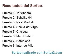 Lista de participantes: Man United, Tottenham, Chelsea, Barcelona, Real Madrid, Inter de Milan, Schalke 04, Shaka de Virgo.