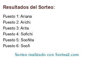 Lista de participantes: Ariana, Arita, Arichi, Soofi, Soofiita, Sofichi.