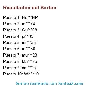 Resultados del sorteo: