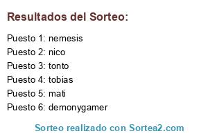 Resultados del sorteo: