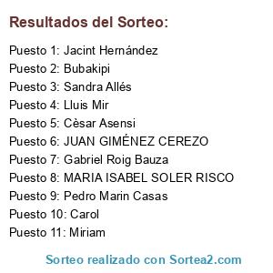 Lista de participantes: Pedro Marin Casas, MARIA ISABEL SOLER RISCO, Miriam, Sandra Allés, JUAN GIMÉNEZ CEREZO, Gabriel Roig Bauza, Cèsar Asensi, Jacint Hernández, Carol, Lluis Mir, Bubakipi.