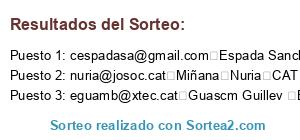 Este sorteo ha sido certificado por Sortea2. Sortea2 garantiza que: