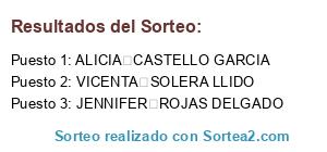 Lista de participantes: SONIA TOMAS CARDONA, ANA ALVAREZ MENGUAL, MARIA BURGUERA MATEO, AMPARO VILLAR PALOMAR, GEMMA MIÑANA MORAGUES, LOLA CLAVIER TOMAS, DESIRE VALENZUELA BERROCAQL, MARIA JOSE CHOVA MARTINEZ, INMA TORRES, MARI ANGELES CARDONA FENOLLAR, LIDIA BUSTILLO PENEDO, SARI MONZO FUSTER, CARLA MORATAL MONZO, INMA MONZO FUSTER, GABRIELA GóMEZ-PIMPOLLO HORCAJADA, VANESSA PASTOR ESTRUCH, RAQUEL DURAN, LOLA ABARGUES LóPEZ, AMPARO VILLORA TORRES, MARIA MORATAL MONZO, PAULA SUAREZ GRIMALT, MARTA GREGORI COMAS, SARA RODRIGUEZ DURAN, SARA FRASQUET MORANT, LUCIA BARDISA DE LA IGLESIA, ROSA JUST FUSTER, VICENTA FUSTER FUSTER, MARI LOLA ALBORS BRIVA, LAURA PLANES ALBORS, MARIA TRINIDAD TRINIDAD CANO, INMACULADA TRINIDAD CANO, SALUD MARTINEZ PERIS, CAYETANA SEGUI MARTINEZ, AMPARO BAÑULS BELDA, JÚLIA LÓPEZ BANYULS, RAQUEL VACA JUST, ROSA VACA JUST, AITANA CISCAR ESCRIVA, NEUS CISCAR ESCRIVA, MARIA ESCRIVA ESCRIVA, CELIA ESCRIVA ESCRIVA, NATALIA BLASCO LOPEZ, MARTA VALCARCEL BLASCO, MARIA JOSE PEREZ CEBRIAN, VERONICA SAEZ MORATAL, LOURDES MORENO SAEZ, EMILIA GARCÍA MARTINEZ, BEATRIZ TERCERO SEMPERE, M. LUISA PARRADO SANCHO, MAVI NUÑEZ CALABUIG, BEGOñA MENGUAL MORENO, LUCIA MENGUAL MORENO, EMI MORENO VELLO, CRISTINA FERRER SEBASTIA, Mª JESUS FAUS JUST, MARTA RIBES GOMAR, NURIA RIBES GOMAR, ISABEL GARCIA MARÍ, BEATRIZ BOIX MORATA, CHELO GOMAR ESTORNELL, CONCHIN GOMAR ESTORNELL, BELEN PRATS GOMAR, INMA PRATS GOMAR, ELENA CLIMENT GOMAR, CARMINA CLIMENT GOMAR, ROSANA GOMAR PRATS, EVA BENAVENT VAYA, LUCIA JURADO GARCIA, MóNICA FLóREZ RóDENAS, CANDELA PEIRó FLóREZ, MARI CARMEN VALLÉS SOLER, MARINA ESPINÓS VALLÉS, CARME ESPINÓS VALLÉS, ARACELI SEGUI ALBERT, ELENA POLOP MIRÓN, MONICA CRISTINA MATZANKE JAKOBES, SILVIA BERTOMEU BARTUAL, EMPAR BARTUAL FERRIOL, ANA VICTORIA GóMEZ KING, NEREA ROMERO GóMEZ, PASION HORTELANO REDONDO, NURIA CABANILLES HORTELANO, LORENA QUISPE IRIGOYEN, MARISOL QUISPE IRIGOYEN, Mª JOSé MARTíNEZ MORATó, ROSA MARTíNEZ MORATó, INÉS CANALES CATALÁ, MARTA CANALES CATALÁ, VIRGINIA CAMARENA DIAZ, DÉBORA BENAVENT CHOVA, ALMUDENA PEREZ SANJUAN, ELVIRA MAURELL VIDAL, SILVIA ALÓS FIGÁS, AITANA MILLÁN BENAVENT, ANNA PONS PELLICER, ANA MAGRANER RODRIGUEZ, ROSA IBIZA ESTRUCH, NURIA SIMO PELLICER, LAURA SANCRISTOBAL SIMO, TERESA SIMO PELLICER, CRISTINA MAñEZ SIMO, TERESA MARIA RUFAT ESTRUCH, ARACELI ZAFRA RUFAT, PEPA VIVES MARTíNEZ, FANI GONZALEZ MOLINA, AITANA BOSCA GONZáLEZ, MERCEDES FUSTER MORAGUES, LUCíA YAGüE MAYANS, CLAUDIA ESCRIVá YAGüE, MAYTE CATALA MARTI, ANDREA BALBASTRE CATALA, INMA BATALLER MURCIA, NIEVES TOMAS SERRANO, NURIA ARENAS PEIRO, IRENE FRASQUET ARENAS, NIEVES PEIRO PUIG, MªCARMEN VALCARCEL MORENO, ISABEL MARTINEZ BARON, LAURA TAMUREJO MARTINEZ, LAURA MOLINA PUIG, ROSARIO PUIG SANSIXTO, MILA PARDO ESTEBAN, NOELIA FAUS PARDO, MARIA REMEDIOS RUBIO CHAVELI, PAULA LLAVADOR RUBIO, RAQUEL COSCOLLA CANTUS, MONICA COSCOLLA CANTUS, Mª ISABEL BENÍTEZ CERCÓS, LAURA RUIZ VILLALBA, ANNA JUAN JORDáN, Mª VICENTA MONZO MONZO, NATI MONZO MONZO, ANTO CANALES MARTINEZ, JESSI MORA CASAMIAN, Mª TERESA SEMPERE GUARNER, ROSA VIDAL MALONDA, ESTHER GOMéZ VIDAL, SILVIA SANLORENZO PRATS, MERCEDES PRATS ALBORCH, PILAR SANCHEZ MORA, MARISA MARCO MARTI, ALEJANDRA GARCíA FERNáNDEZ-GALLEGO, Mª GLORIA MAÑÓ SUÁREZ, AMPARO FAUS MASCARELL, JUANA SANCHO MORATAL, NIEVES LLORET ALMIÑANA, ANDREA MAHIQUES LLORET, SONIA BORRAS SUÑER, SONIA DONET FLORES, CIRILA FLORES RAMOS, SOFíA PEREZ DONET, ESTEFANIA CAMACHO FEMENIA, SONIA CUENCA TUR, MARTA TUR RODRIGUEZ, Mª DOLORES PEñALVER GINER, GAL.LA MéNDEZ PEñALVER, PAQUI PLANELLS AMO, MARIA BENITEZ PLANELLS, MARIA TERESA BLANCO AYLAGAS, MAITE GOMAR MORANT, LOLA FUSTER MILLET, INMA SEGURA MENGUAL, GEMMA PEIRO SALVA, RAQUEL BESARI JIMéNEZ, CONSUELO OROVAY MONTANER, NURIA ARBONA OROVAY, OLGA PEñALVER GINER, ALMA MILVAQUES CUCART, ANA COTS MILVAQUES, ELISA JUáREZ VALERA, LUCíA ORTOLá JUáREZ, PENéLOPE PEIRó RUANO, MINERVA PEIRó RUANO, CLARA LURBE SABATER, CLARA RUANO LURBE, CHELO SANTAPAU GIL, RAQUEL BORRAS BERTOMEU, CLAUDIA SORIA BORRAS, ARANTXA LóPEZ MATOSES, LIA PEñALVER LóPEZ, LUCIA SANCHEZ GARCIA, ESTER PINEDO GIL, GEMMA GOMEZ RAMIREZ, CONCHA RAMIREZ PALOMARES, SONIA VICENS FAUS, AIDA CARDONA CARBó, SILVIA MORANT LUNA, ROSA MARIA REINA ROSELLO, ROSA LLUIS REINA, ALICIA REINA ROSELLO, LAURA REINA ROSELLO, ESTHER CALDES PEREZ, SILVIA FERRER GARCIA, MARÍA JOSE MELO GONZÁLEZ, LOURDES TORRES MELO, OLGA MARIA GIMENEZ CISCAR, PAULA TORRES GIMENEZ, MARIA CISCAR CISCAR, ELENA JORNET GALLETERO, MARIA PASCUAL ALBALAT, ANTONIA SIGNES CASELLES, SAGRARIO TORRES CARTAS, ADA TORREGROSA TORRES, JULIA SOLER FORNES, MARISOL DOMENECH BLANCO, IRENE SIGNES GOMEZ, SONIA GONZALEZ MONZO, MÓNICA SERVER MIRALLES, EVA DOMINGUIS LLAMBIES, INES BONTRON BOU, MAYA SENDRA REIG, PILAR RUIZ GARCIA, INMACULADA PEIRO ARNAU, LAURA PEREZ PONS, ESTER PEREZ PONS, CELIA FRANCO IBAÑEZ, ANA ORTEGA CORTES, SANDRA MORENO ORTEGA, IMMA LóPEZ MORA, SONIA MORENO LAINEZ, LAURA MORENO ORTEGA, JASMINA LERIDA CREIX, NOELIA SANTOS PEREZ, ENCARNACION LLINARES BAÑULS, GLORIA TABORDA TABORDA, CARMELA MARINO PECHE, PEPI SANCHEZ JIMENEZ, PEPI MERINO SANCHEZ, ZAIRA ESTRUCH MERINO, CARMEN SANCHIS SANZ, LUISA TORMO SEGRELLES, MARIA JOSE COLOMINA MORATAL, ROSARIO COLOMINA MORATAL, CARMEN OLIVARES MAñES, LUCIA ANDRES OLIVARES, SARA BAñULS MATOSES, GURUTZE RODRIGUEZ ARMENDARIZ, SARA NDONGAR GóMEZ-PIMPOLLO, EVA BARRAGáN MARTINEZ, NURIA BARRAGáN MARTINEZ, VANESSA PLATA MARTINEZ, MONICA PLATA MARTINEZ, GISELA LUCAS MAñó, JULIA MARIA PéREZ GARCíA, ALICIA GóMEZ BELLóN, MAVI MORELL MONCHO, LEILA BELMONTE DEL AMA, ARIAN BELMONTE DEL AMA, MELISSA ORTOLA LOPEZ, BELEN BATALLER BOSCA, CARMEN BOSCÁ BAÑULS, MóNICA MARCO FEMENIA, VICENTA PUIG FRASQUET, ISABEL BLASCO FRIGOLA, MARíLOLA ESCRIVA NICOLáS, SILVIA GUILLEM FERRER, LAIA MELENDEZ APARISI, AMPARO APARISI CHOVER, EMILIA PASTOR MORELL, ROSA OLASO COSTA, INMA TORNERO LOPEZ, PATRICIA GRANDE PIRIS, SA
