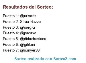 Lista de participantes: Silvia Bazzo(3), Zina Ghiurca, @gihlani(3), @eva_arino, @sergici, @miquelhellin, @urixarls, @sunyer99, @pacaxo, @didacbasiana, @carleshll(2).