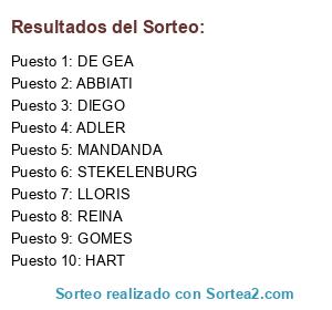 Lista de participantes: LLORIS, REINA, DIEGO , MANDANDA, HART, ABBIATI, ADLER, GOMES, STEKELENBURG, DE GEA, .