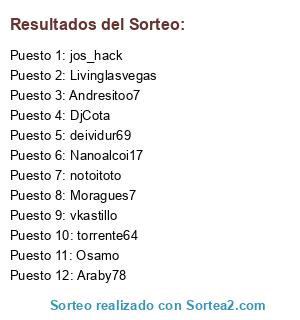 Lista de participantes: deividur69, Andresitoo7, Livinglasvegas, Nanoalcoi17, Araby78, DjCota, vkastillo, Osamo, torrente64, notoitoto, Moragues7, jos_hack.