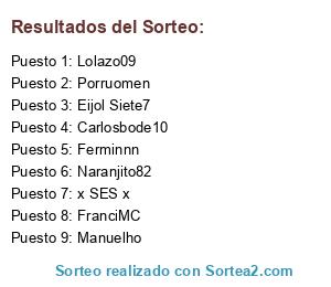 Lista de participantes: Manuelho, FranciMC, Carlosbode10, Eijol Siete7, Porruomen, x SES x, Ferminnn, Lolazo09, Naranjito82.