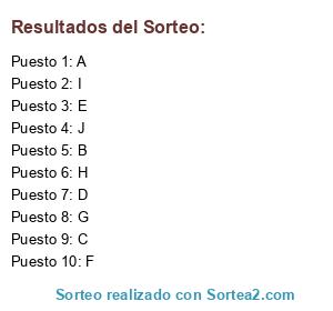 Lista de participantes: A, B, C, D, E, F, G, H, I, J.