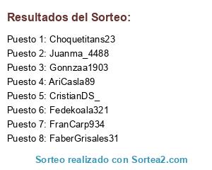 Lista de participantes: FranCarp934, AriCasla89, CristianDS_, Fedekoala321, Juanma_4488, Choquetitans23, Gonnzaa1903, FaberGrisales31.