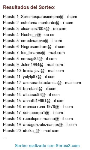 Sorteo Acción con Verdeliss Diciembre 2016 (SUPLENTES)