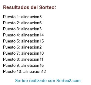 Resultados del sorteo: