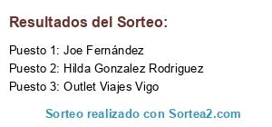 Lista de participantes: Outlet Viajes Vigo, Maria J Rodriguez Martinez, Javier Montero, Nuria Sánchez, Aldaba Gestion Inmobiliaria, Hilda Gonzalez Rodriguez, Jose Miguel Astobiza, Toliño de Todo, Javier Losada Villar, María Barros, Odie Wes, Anxo Fernandez, Jose Pereira, Cristina Fernández Blanco, Barros Daniel, Isabel Fdez, O Folgo Turismo Rural Santiago, Benito Rodriguez Seoane, Olaia Iglesia Cereijo, Karlitus B Gonzalez, Joe Fernández, Clara Clar Cla, Martin Fraile Bertone, Mariine Dumenil, Patrick Douglas, Roberth Felix, Kelvin Lima, Paula Luc, Gabriel Berbeki, Ana González Pereira.