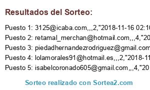 - Puesto 4: lolamorales91@hotmail.es,,,2,"2018-11-16 02:10:05",,"2018-11-16 02:10:05",,,,,,,,,"2018-11-16 02:10:05",69515145,1aa6ffee3b,