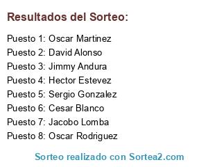 Lista de participantes: Oscar Martinez, Jimmy Andura, Jacobo Lomba, Cesar Blanco, Sergio Gonzalez, Oscar Rodriguez, David Alonso, Hector Estevez.