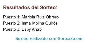 Lista de participantes: Alberto Messi Ento Seguro, Rocío Delgado, Antonio Medina Contreras, Yolanda Diaz, Oscar Beneito, @Yolandashiro, Rocio Romero, Mireya Fernandez , Almudena Rufi, Conal Instalaciones, Susana Mateos Moreno, @Mir9511, Mayte Cano Hernandez, Raquel Sanchez Escalona, Nagore Garcia Ortega, Espy Anab, Angela Garrido de la Rosa, Carmen Maria Solis Molero, Rocio Zafra Martinez, Rafi Ramirez, Paqui González García, Juani Carvajal Cruz, Adriana J Medina, Noelia Ruiz Arrebola, Alicia Lijarcio, Lorena Espejo, Sara Guerrero Quesada, Maria Victoria Ruiz, Sara Quesada Quesada, Sonia Donaire Colmenero, Alicia Albadalejo, Noelia Elc, Fernando Polaina, Cristina Fernandez Medina, Mari López, Lourdes Jimenez, Veronica Lopez, Verónica Villa García, Enca A Chica, GR Aniya, Vicente Cañada Guzmán, Maritere Gonzalez Saez, Maria Belen Gila Roa, Gomi Mola, Maria Jesus Perez Lorite, M Del Mar Jiménez, Sara Cano Ramirez, Lorena Caballero Luque, Noelia Mercado Ramirez, Oli Leguizamon Samaniego, Marta Alc Sán, Ana Roa Picardo, Cris Cristi Cristina, Frank Kafka, Paula Oller Zafra, Noelia Hervas Valenzuela, Verónica Melero López, Antonio Cámara Checa, Fernando Luque Pérez, Vanessa Casado León, Sara Moya, Isabel Dalarna, Miguel Angel Casado, Ana Garcia Jimenez, Maria Jesus Martos Estrella, Sonia Sánchez, Gema Quesada, Ara Blanca Blázquez, Mcarena Mp, Jmary Carrillo Moreno, Juani AL, Maria Luisa Contreras, Maika del Rio, Carmen Arroyo Alcantara, Laura Maeso, Lourdes Cubero, Olga Cb Aad, Vero de la Chica, Rosa Maria Lopez Exposito, Loli Pulgar, @Marichechus, @SaraNesquik, @VanessaCL93, @Noelia982, @antonioboxer91, @juanj_anca, Angu Castellano Arroyo, Ana Qmc, Sarita VM, Mari León, Melany Lendinez Extremera, Tis Killar, Juanmi Durán, Inma Gutierrez Trujillo, Lorena Martínez, Maria Jose Garrido Liebana, Antonio Cañada Blanca, Jose Carlos Escribano, M Isabel Zambrana Medina, Estrella Alcazar, Cristina Quiros, Paqui Lopez Torres, Marta Rivilla, Ana Isabel Latorre López Villalta, Patri Lara, Carmen Montesinos Ortega, Greisa BQ, Merche Efecinco, Mari Perez Perez, Nebur Marher, Antonio Garrido Caño, Angel Custodio Moral Pelaez, Lidia Garcia, Pilar Perez Cuevas, Tamara Sánchez, Lola Viñas Morillas, Helena Calvo Ureña, Juani Garcia Sanchez, Gema Avila Alcantara, Angela Callejon Hernandez, Maria Castillo Cano, JTrillo Oller, Mar Aviles Gomez, Mary Ortega, Mjyra de Jaen, Melani GmGn, Margarita Medina, Elena Torres Ratia, Mitchie Algar Gutiérrez, Angustias M. Párraga Cámara, Jose Haro Balboa, Mari Carmen Macías Salas, Isa Milla Martinez, Juana la Loca, Alba Rico, Cristina Liébana Barranco, Lydia Cruz, Ana Zafra Moral, Leti Ruiz Bas, Salomé Galiano Garcia, RaulyMariangeles Sanchez Palacios, Elena Romero, Alberto Contreras, Francisco Sánchez Lara, Natalia Barranco, Laura López Quesada, Irene Pérez Gómez, Ana Martinez, Fátima Hervás, Jose Chica Siles, Cristina Galán, Loli Pozo, Veronica Ramirez Poza , Elena Huertas, Noelia Lorente, Manoli Cortes Denia, Lorena Garrido Molina, Juani Higueras Gomez, Manoli Serrano, Triny Serrano, Leonor Lorite Sanchez, Naiara Parras Parras, Isabel Rus Martinez, Isabel María Pérez Montes, Serafín Ruz Díaz, Paky LM, Mayca Estepa Rojas, Marya Castro Castro, Juan Pedro Ramirez Chica, Elisabeth Cortes Jose Jimenez, Luisa Maria Cano Lozano, Naxa Isac Serrano, Mari Jose Rico Rico, Laura Soto Rosa, Teresa Mena Gómez, Martina Millan Mimbrera, Jess Vg, Paqui Peragón, Lorena Jaén, Rocío Pérez Montes, María Luisa Pérez Pancorbo, Grego Tralarí Tralará, Estibaliz Pérez, Laura Lopez Lozano, Eva Martinez Lopez, Mariloli Martinez, Mari Loli Delgado Vela, Irene Ca Hi, Gumersindo Castro, Carmen Perea, Maapy Bg, María Rodríguez, Almudena Calderon Cruz, Daniel Ramirez Rosa, Martita Martinez, Geronima Guitarra, Sara Bonilla Checa, Beni Moreno Burgos, Maricarmen Lopezdelacasa, Fina Moreno, Paky Morgut, José Antonio P A, Lourdes Vela Jiménez, Teresa Garcia, Nuria Martos Bolívar, ZC Yasmin, Mari Tere Párraga, Maria Gonzalez Hornos, Pepa Torres, Fernanda Liebana, Stefania Aguilera, Dory CG, Aitana García Yeste, Angel Moral Lopez, Coronada Romero García, Marta Ortega Garcia , Fatima Baena Aranda, Mamen Muñoz, Carmen Maria Perez Heredia, Encarni Ruiz Alcazar, Mercedes Portellano Viribay, María Navarro, Gabriel Ortega Pérez, Rocio Olmo, Fran CR, Ana Naranjo Gallego, Laura Beltran, Alicia Cuesta Jimenez, Patricia Miranda, Iliana Garnica, Yolanda Barrera Castillo, Tony Bueno Lozano, Sara Rodriguez Garcia, Adely Jaen, Sandra Serrano Galiano, Macarena Gonzalez Dorado, Miriam Garcia Serrano, María Sánchez Cuesta, Paqui Relaño Barrera, Lydia Pancorbo Rico, Angela Molina Martinez, Manuela Montilla Relaño, Encarni Segura Ortíz, Bilby K Tres, Mari Casado, Noelia González Marín, Cory Leal Reyes, María Delgado, Carol Mon, Paqui Pérez, Fuensanta Exposito Soriano, Antonio Jose Rivera Merino, Susana Navarro Martínez, Juanlu Alcazar Sanchez, Jose Rodriguez Ruiz, Maria Armenteros, Gema Gemiya, Esteban Galán, Ana Hernández , Lola Garcia, Gema Perez Garcia, Elena Moral, Raúl Serrano Escabias, David Cámara, Mari Carmen Rodriguez Contreras, Belén Campo López, Silvia Xauen, Raul Xauen, Susi Herrero, Almudena Sierra Sanchez, Beatriz Perez Kanija, Rocío CJ, LoLo Ortega, Irene Guijosa Arias, Thifany Lokiza, Juanma Checa, Eva Zafra, Pedro Gamez, Juanjo Tatui, Rafa Roldán, Mary Requena García, Manu Chica, Vanessa Sanchez Moreno, Mireya Aguilera, Maria Jose Lumbreras, Antonio Mayor Montijano, MariCarmen Martos Colmenero, Rocio Puñal Jiménez, Any Velasco Romero, Maria Rueda, Rafael Roldán, Rocis Linares, Natalia Medina, Jorge Erena Ortega, Luisa Sutil Orcera, Inma Hervás Rodríguez, Almudena Soto, Favi GiCar, Raquel Pérez Sepúlveda, Alba Redondo, Esther Rodriguez, Sandra Torres Lopez, Gloria Cañete Alcantara, Ana Guerrero Martinez, Cristina Ruiz Mena, Laura Arjona, Encarna Morales Ortega, Inma Inma, Nuria Cuevas Camacho, Ruben Galan, Sole HG, Ana Sánchez