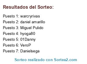 Lista de participantes: @Albertuchobp, @danimod, 01Danny, abraham andres, Acosta, adrian grillo, adult-x, afel, Akte, albertgoca93, Alejandro Ramirez, Alejandro Santana Pé, Alejandro Serralvo, alejon1974, Alex_23, Alfon Skunk, alfonso_nm, algarroba, Andrés Yepes, ANote, antonio_nl, Armando Baca, artu1988, athemdrake, Azaky, Bautista, beretor85, Blablabli91, broly1984, bugitxu, carlis87, Chago, Charly80ds, chenowy, Christian Collado, claski, cosmic, cvalera, D3MoN64, Danicp14, daniel amarillo, danielito69, Danielsega, DaniSalGodoy, darksylvok, davixd, davpublico, Elias, Elmendo11, Emilio Garcia, EmirAdalid, ericktrou, es.german, Ese Potxo, Estebanbang, EVA MARIA, Fabianfa, Fany, FerGarcia8, Fernan, FernandoO, filojs, frangrana, fredy 10, Genericfree, gianni159, Gregorio Estevez, Gsus, Guaguo, Guillegsm, hyoga80, Ikcfer, Iván de Andrés, Ivantxet, Ivaylo Dechkoff, j0shii_, jarruego, javibj, jimbojordi73, jmanu, JordiR, jorgegrx, jose amosa, jose antonio aguilar, Jose Julio, Jose L. Medina, Jose T, joseman160, JoseMiguel, josepS, JrMcqueen, jsaorin, Juampy82, Juan Martín De Riso, juanig10, kambotes, kaymhan, Killer7, Koji Kabuto, KoToBuKiYa, kurobyte, Lautaro Borda, lcabao, le0pard0, Leo, Luis mandel, Maic, Male!, Maledor, manpomer, manu__guerra, marc bachs, marsial32, Martita_ratita, Maskself, Matias Fraile Diaz, Miguel Pulido, miguelon39, Nahiide, NokYoL0, Oasis, orcus25, orien, pablofarin, pakopenha, paqui_nl, payito, Pedro, pedro juan, pipe_droid, Proelio, Punkysurfer, Quique, Quitoboss, Ramón bix, rangis, Raul Gonzalez, Raul pucela, Raulmartgo, realrony, Regu, Reyero, Ricardo Cruz, Ricardo Ventura, Rugle, S_Black, Sabrosonct, Salva, SalvaYufera, segam, Sergio Parreño, sergio r, shely, solosito, soros89, suco, SuperFran, supremo, ThisOnePauL, thor1981, titovicente, torres18, valeria, VeroP, Versia, vicent, vicente peris, waltermckoy, Wapest, warcryrivas, wiiolent, ximiyo, YoAndroideo, Yolanda Marin, yuriy636, Zephaniel, zhecloud, zmac.