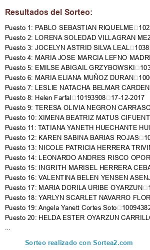 - Puesto 16: VALENTINA BELEN YENSEN ASENJO 10400811 18-12-2017