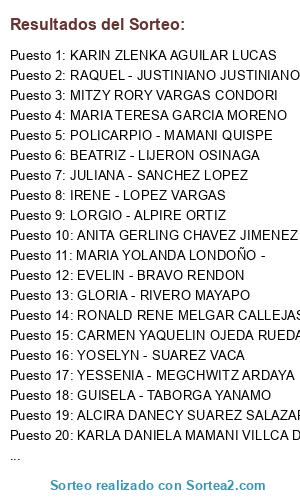 Resultados del sorteo: