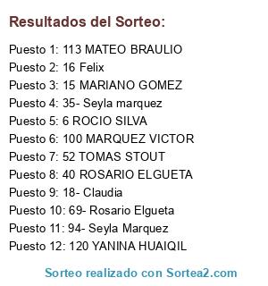 Resultados del sorteo: