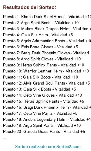Lista de participantes: Set Ceto Vine, Set Apollo Pad, Set Warrior Leather.