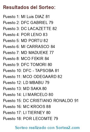 Resultados del sorteo: