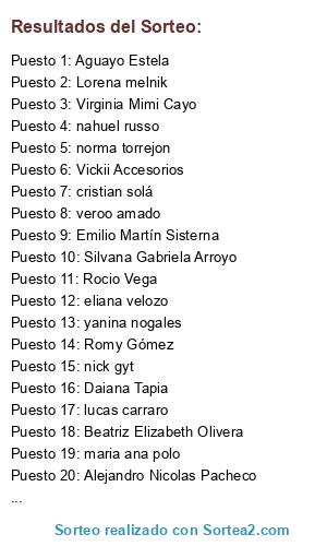 Lista de participantes: Gabriela Moreno(2 participaciones), Pamela Miranda Marengo(2 participaciones), monica neme(2 participaciones), andrea olivera(2 participaciones), mauro rios(2 participaciones), natalia benegas(2 participaciones), Silvana Gabriela Arroyo(2 participaciones), ana laura gradin(2 participaciones), Claudia V González(2 participaciones), matias diaz(2 participaciones), Queña Cosas Muy Ricas(2 participaciones), exequiel treviño(2 participaciones), jesus gamboa(2 participaciones), sandry romero(2 participaciones), Carliitoos Suarez(2 participaciones), virginia cespedes(2 participaciones), gime fernandez(2 participaciones), alejandra barrera(2 participaciones), Alejandra Tejerina De Zuani(2 participaciones), maria eugenia daher(2 participaciones), Lucia Macarena Ayala(2 participaciones), matias quipildor(2 participaciones), Jorge Luis(2 participaciones), Virginia Mimi Cayo(2 participaciones), florchu palomino(2 participaciones), Santiago Rafael Di Leandro(2 participaciones), Vickii Accesorios(2 participaciones), Anto GonzAlez(2 participaciones), gaby guaymas(2 participaciones), mariela palomino(2 participaciones), Estela Dahut(2 participaciones), florencia molino(2 participaciones), enrique finetti(2 participaciones), Josefina Mentesana(2 participaciones), Flor Paputsakis(2 participaciones), Gri Llita(2 participaciones), Rocío Muñoz(2 participaciones), Leeo Emmanuel(2 participaciones), Victoria Rosas(2 participaciones), natalia saravia(2 participaciones), Rocio Livelli(2 participaciones), andrea flores(2 participaciones), jorge salta(2 participaciones), micaela vega(2 participaciones), mati benegas(2 participaciones), Mónica Pérez(2 participaciones), Ayde Mamani(2 participaciones), silvina sancho(2 participaciones), Maria Emilia Angel(2 participaciones), nahuel russo(2 participaciones), blanquito piojoso(2 participaciones), Judith De Los Angeles(2 participaciones), yanina arnedo(2 participaciones), Lali Singh(2 participaciones), yanina nogales(2 participaciones), Romy Gómez(2 participaciones), chulita lancho(2 participaciones), fede carranza(2 participaciones), Daniela Emilce(2 participaciones), carlos perez(2 participaciones), Naomi Sol Macaione(2 participaciones), alesito lopez(2 participaciones), fernanda soria(2 participaciones), luz aranda(2 participaciones), Belu Baigorria(2 participaciones), danuiela chavez(2 participaciones), Flor Abril Abán(2 participaciones), carolina carrasco(2 participaciones), Agustina Ernst(2 participaciones), mika gonzalez(2 participaciones), Cati Di Puglia(2 participaciones), belen vittar(2 participaciones), Daiana Tapia(2 participaciones), Lely Arjona(2 participaciones), cami figueroa(2 participaciones), Jime Morales Torfe(2 participaciones), Laura Mendoza Colazo(2 participaciones), maria flores(2 participaciones), Edith Apaza(2 participaciones), lucas carraro(2 participaciones), Yael Lamas Perez(2 participaciones), maryte acuña(2 participaciones), Marcela Peralta(2 participaciones), veroo amado(2 participaciones), Emilio Martín Sisterna(2 participaciones), marcela alejandra padilla(2 participaciones), Rihan Nas(2 participaciones), eliana velozo(2 participaciones), Liz ST(2 participaciones), Mauro Gomez Malco(2 participaciones), noe valdez(2 participaciones), ne miranda(2 participaciones), Aguayo Estela(2 participaciones), lilian esquivel(2 participaciones), cristian solá(2 participaciones), ayelen gramajo(2 participaciones), Felicitas Colina Cornejo(2 participaciones), alejandra albariño(2 participaciones), carolina mogro(2 participaciones), Aylen Rocio Alarcon(2 participaciones), Beatriz Elizabeth Olivera(2 participaciones), maria susana valentini(2 participaciones), cari ferreyra(2 participaciones), Hector L. Alarcon(2 participaciones), norma torrejon(2 participaciones), trotamundos(2 participaciones), noe crisol(2 participaciones), Sofi Simesen de Bielke(2 participaciones), maria ana polo(2 participaciones), Alejandro Nicolas Pacheco(2 participaciones), fer miraza(2 participaciones), maria eugenia vera(2 participaciones), Ivana Lillicrap(2 participaciones), nick gyt(2 participaciones), Rocio Vega(2 participaciones), Lolys Vasquez(2 participaciones), Lorena melnik(2 participaciones).