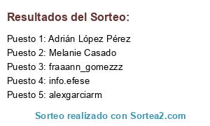 Lista de participantes: Adrián López Pérez , alexgarciarm , info.efese , fraaann_gomezzz , mama_de3principes , Melanie Casado.