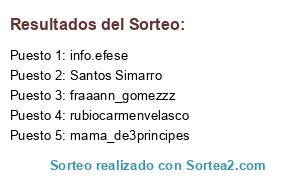 Lista de participantes: Santos Simarro , rubiocarmenvelasco , mama_de3principes , info.efese , fraaann_gomezzz.
