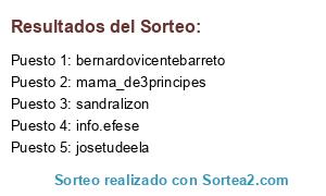 Lista de participantes: sandralizon , mama_de3principes , info.efese , josetudeela , bernardovicentebarreto.