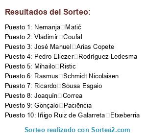 Lista de participantes: Pau López Sabata, Dominik Greif, Vladimír Coufal, Ricardo Sousa Esgaio, Guillermo Alfonso Maripán Loaysa, Rasmus Schmidt Nicolaisen, Benjamin Thomas Davies, Mihailo Ristic, Omar Mascarell, Nemanja Matić, Joaquín Correa, Pedro Eliezer Rodríguez Ledesma, Cyle Larin, Yussuf Yurary Poulsen, Matías Vecino, Iñigo Ruiz de Galarreta Etxeberria, Robin Pröpper, Stephan El Shaarawy, José Manuel Arias Copete, Gonçalo Paciência.