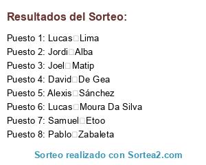Lista de participantes: Denis Suarez, Gaucho Ronaldinho, Gerard Pique, David De Gea, Alexis Sánchez, Stefan Savic, Joel Matip, Koke Resurrección, Jordi Alba, Lucas Moura Da Silva, Pablo Zabaleta, Diego Costa, Alberto Moreno, Maarten Stekelenburg, Mario Gotze, Miralem Pjanic, Samuel Etoo, Keita Balde diao, Jeronimo Rulli, Lucas Lima.
