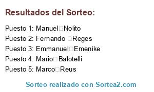 Lista de participantes: Rene Adler, Helton, Isco Alarcon, Stephane Sessegnon, Javi Garcia, Fernando Reges, Xabi Alonso, Cesc Fabregas, Alvaro Pereira, Kyle Walker, Manuel Nolito, Holger Badstuber, Benedikt Howedes, Carlos Tevez, Mario Balotelli, Sebastian Coates, Emmanuel Emenike, Marco Reus, Mario Mandzukic, Apostolos Vellios, Adrian.
