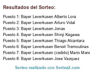Lista de participantes: Bayer Leverkusen Jose Vazquez, Bayer Leverkusen Jonas, Bayer Leverkusen Steve Mandanda, Bayer Leverkusen Shinji Kagawa, Bayer Leverkusen Andoni Iraola, Bayer Leverkusen Giuseppe Rossi, Bayer Leverkusen Jerry Akaminko, Bayer Leverkusen Patrick Herrmann, Bayer Leverkusen Marcelo (DFC), Bayer Leverkusen Alberto Lora, Bayer Leverkusen Arturo Vidal, Bayer Leverkusen (cedido) Mario Mandzukic, Bayer Leverkusen Victor Valdes, Bayer Leverkusen Thiago Alcantara, Bayer Leverkusen Marvell Wynne, Bayer Leverkusen Juan Manuel Mata, Bayer Leverkusen Bastian Schweinsteiger, Bayer Leverkusen Benoit Tremoulinas.