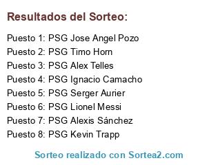 Lista de participantes: PSG Michy Batshuayi, PSG Kevin Trapp, PSG Jose Angel Pozo, PSG Modibo Diakite, PSG Javier Pastore, PSG David Luiz, PSG Omer Toprak, PSG Alex Telles, PSG Timo Horn, PSG Alexis Sánchez, PSG Luiz Gustavo, PSG Serger Aurier, PSG Lionel Messi, PSG Diego Godin, PSG Ignacio Camacho.
