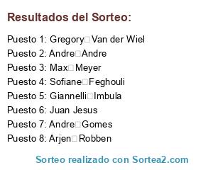 Lista de participantes: Dybala, Kurt Zouma, Oliver Torres, Ignazio Abate, Hugo Lloris, Jose Gimenez, Sofiane Feghouli, Mattia Perin, Andre Gomes, Roberto Pereyra, Luis Muriel, Allan Marques Loureiro, Kevin Kampl, Ilkay Gundogan, Jack Butland, Daniele Rugani, Gregory Van der Wiel, Mehdi Benatia, Juan Jesus, Luciano Vietto, Max Meyer, Arjen Robben, Alex Song, Eric Bailly, Otamendi, Marcos Rojo, Grzegorz Krychowiak, Danilo (MCD) Barbosa, Andre Andre, Giannelli Imbula, Sergio Agüero, Leo Baptistao, Karim Benzema, Bernard.