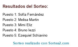 Lista de participantes: Mimi Eliz , Bruno Iezzi , Melisa Martin , Sofía Fernández , Ezequiel Schiavino.