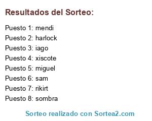 Lista de participantes: mendi, rikirt, iago, harlock, miguel, xiscote, sombra, sam.