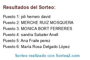 Lista de participantes: Marta Cuevas Rodríguez, Laura Pérez Muñoz, sandra becerra lopez, Maite Llorach, Belén Lozano Pelegrin, Susana Garrido, noemi sanz romero, Nuria González Urbieta, Mª Amparo Peiro Brull, pilar maceiras, Raquel peñalver barrero, Belen Herrero mendez, Sonia BG, mery jodar contreras, yolanda merino navarro, ana maria redondo medina, Maria Dolores Albalejo Blanco, Ana Rojo, Paula Landin, Sonia Fernandez-Caballero, Maria Teixidó, pili herrero david, mar crespo antuñano, marta jimenez fernandez, Maria del Mar Guerrero Cassoni, vanesa torres macia, agustin mejias portilla, Aitziber Martinez Garcia, Lorena Sanjurjo Teijido, rosy rosy, María Elena Rodríguez Perez, Inma Vazquez, Esther Brull escobar, Neus Hernández Cabot, Carolina Pozo García, maria isabel tobon restrepo, Nora Suarez espino, Alicia Pozo García, Silvia Fernandez Gonzalo, Diana Pacheco, marina amador morales, Setefilla Jimenez García, Lidia Rosa ruiz, Cristina Talavera, maria dolores guerrero ruiz, María jose Antich, Elena Santana hernandez, Laura López Carrión, Rocío Mingorance Guerra, Nuria Calderon García, maria jose balmont pineda, soraya fernandez pastor, Lorena Pedraza Andrade, gemma cuervo sanchez, Vanessa Rodriguez lopez, Monika Rodríguez Pérez, Azucena mendez, gina raymat barri, Ana Infante, Silvia Cifuentes Gómez, cristina sanchez sanchex, noemi marti bordera, Gema Mostaza Barrios, M. Carme Bárcena Prunera, Paula Gonzalez Prieto, Esther nadales Serrano, ana perez, paqui toribio, Mercedes Vazquez Molina, Inés Romeo timiraos, Noelia Gonzalez Muriel, rocio moreno romero, Loles Martinez martinez, Marilena Sitjar, M. Amparo M.Amparo, Esther Ruiz Perera, Mari carmen Romero quintero, Fátima López, Maria Diaz Fernandez, Violeta Porres, patricia cano quintilla, Elisabet Megías Roda, sara centelles, ana muñoz rama, LAURA TENRERO GONZALEZ, Elena Colell gracia, Patricia Torres Rodriguez, Vanesa Romero gallego, Paloma de Haro Artasanchez, Ana Moral Blanco, Raquel Largos gil, heidi Muñoz Vicente, Laura gomez poblete, inma Megias, Esther Ledesma, maria jesus rubio garcia, Siomara Barrio Hernández, Beatriz Calle lopez, rocio suarez vega, Marta Muñoz Garcia, M Gemma Silgado ORIZO, nuria tarridas grau, Mary Bustos, Monica Moreno honzalez, Aroa Aleixandre Marti, Eva parente gonzalez, noemi martinez moledo, Sandra Garcia Ros, Leticia Martín García, Rebeca Briones Dávila, ANNA RUDILLA, veronica franco lopez, Sandra Portugal calvo, Soledad Garcia Jerez, MERCHE RUIZ MOSQUERA, Tania Iglesias Rodríguez, Magdalena Gayoso Rodríguez, Pilar Martin Vaquero, ANA VILLAFRANCA GIL, Ana Maria García Carrasco, Alejandra Domingo Sanchez, Inma Inma, Monica correa san Juan, Beatriz Ramos Rodríguez, judith martinez, eva cantos trillo, Ester Garcia, leticia cerro espi, loli lopez castillo, Angeles Martinez Lapeña, carolina Guerrero, Lucia Martinez Lapeña, Noelia Vidales Pantoja, Gemma Cazón, susana lopez claver, Patricia Ponte Carracedo, zulaika alfonso miguez, camelia jimenez, Isabel Rosalia Lopez Carrasco, tatiana guijo gascueña, anna maria fedele, Soraya Ortiz, raquel lopez, Mar Quesada ballester, sonia pedrero molina, Marta Muñoz Collado, Cristina galera ferre, cristina Cristina, ana maria garcia de diego, beatriz Álvarez martin, pilar alvarez cuadrado, rosa maria lobo coello, maria artime garcia, Sandra Perez, sonsoles gonzalez, patricia costas sa, Esther Moreno Rojas, susana lopez otero, Cristina Espert Roig, ana García, Magali Poderoso blazquez, pilar gamella carballo, MONTSERRAT TOLEDANO LÓPEZ, claudia Gonzalez, Mónica Rodriguez Garcia, Rebeca Salt, Conchi Meneses Garcia, belen pampanas rubio, Yolanda sanchez alberca, claudia doncel bueni, victoriana barrera barba, Veronica Prieto nacarino, Amparo Juan Tatay, Maite Pasaron rueda, isabel rubio, Noelia Isasi de Isasmendi, Paula fernandez de las Heras, carolina morales, vanesa aranda garrigos, Cristina Gonzalez Rodriguez, belen foncillas, amaia bikandi, Sandra Paniagua, katrina fernandez albert, Josefa García García, raquel martos, Estela Casanova, zahyra garrancho, ROSA SALMERÓN ORTEGA, Deborah Arribas Manso, Veronica Ares Jove, Nuria Matute, Aitana Lluis resa, mari carmen sanchis sabater, carol ibañez alcaine, esther gallardo ballesteros, charo aparicio, Esther Muñoz Siles, Mercedes Charneca Fernández, Rocio de la Rosa, Arantxa Villalvilla Blazquez, Mireia Carrera Riera, ruth lopez santiago, Mari Saiz, leonor Martin Goldar, Paola Reig, fatima perez, Maria Fernandez, ana benedito, raquel Sánchez Hernández, paula rodriguez martinez, NURIA PEREZ ALONSO, josefi González carrasco, Beatriz Molina Romero, lourdes rodriguez, Rebeca Araya, Paola Perez Otero, Monica Tejero González, anahi garcia Sanchez, Susana Garcia Garzon, Silvia Castrillon Alvela, ana gatius yubero, kira cervero, Angela Pineda, Eva campos fuentes, silvia ramon torrea, Rocio Rueda Corchado, Desirée Desi Rée, vanesa lopez lopez, Marta Lorenzo, Ruth Núñez Florencia, Cristina Sánchez, Ana Belén Iglesias Roncero, Anna Díez Carrillo, MARIA LUISA MARCOS DOMINGUEZ, Rosa Pastrana Nuñez, teresa maria losada fernandez, Navelonga Garcia Cordero, Cristina Gimenez Castejon, Patricia García Guerrero, MARI CARMEN lorenzo GARCIA, Teresa salvia pons, yolanda cuberes valles, Noelia Gómez Abad, Jesus Cere, NURIA NOBREGA GOMEZ, bea Rodriguez, Natividad Belén Valeros Blázquez, Mar Robles pelaez, Jessica Navarrete toral, Cynthia Tapia, Penelope Amor Lobo, Alvaro Martin, Nerea Caramazana martinez, Marta Alvarez Santo Tomas, Ana Torres, Mercedes Garcia, Carolina Castaño Chaves, Patricia Galiano Morellá, Rosa Aluja Ortiz, Begoña De Castro Lobo, Eva Gonzalez Vazquez, Cristina alvarez rodriguez, ana rosa daza Malia, ANA ROCA PERNAS, Amelia Ayllón Barranco, Natalia Rodriguez manso, LOURDES IGAL ARIAS, Irene Gomez Guarinos, patricia rodriguez gomez, Cristina navarro, Ana Álvaro arigo, marisol puente rey, Verónica Pacheco Castellanos, Carmen Ríos, Xandra Argul Fernandez, sole Me