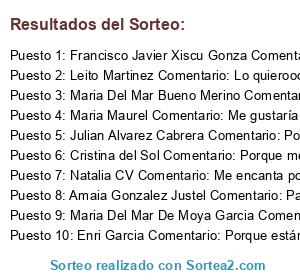- Ganador 2: Leito Martinez Comentario: Lo quieroooooooooo para mi niña le haría gran ilusión.
