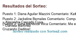- Ganador 2: Jackeline Bernales Comentario: Compartiría estos exquisitos premios con: ~ Alexandra Cercado Cuya ~ Daniela Martínez Cruzando Deditos!